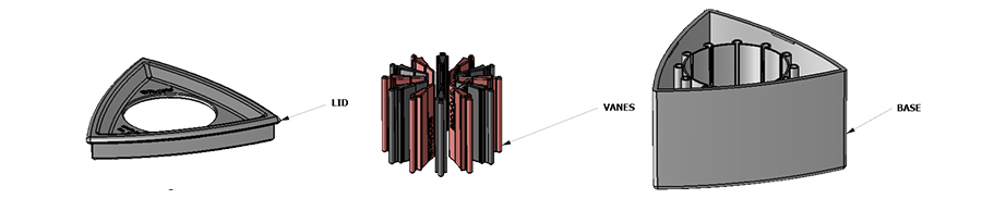 *To remove vanes: remove Lid from Base & slide every other Vane out, then replace lid.